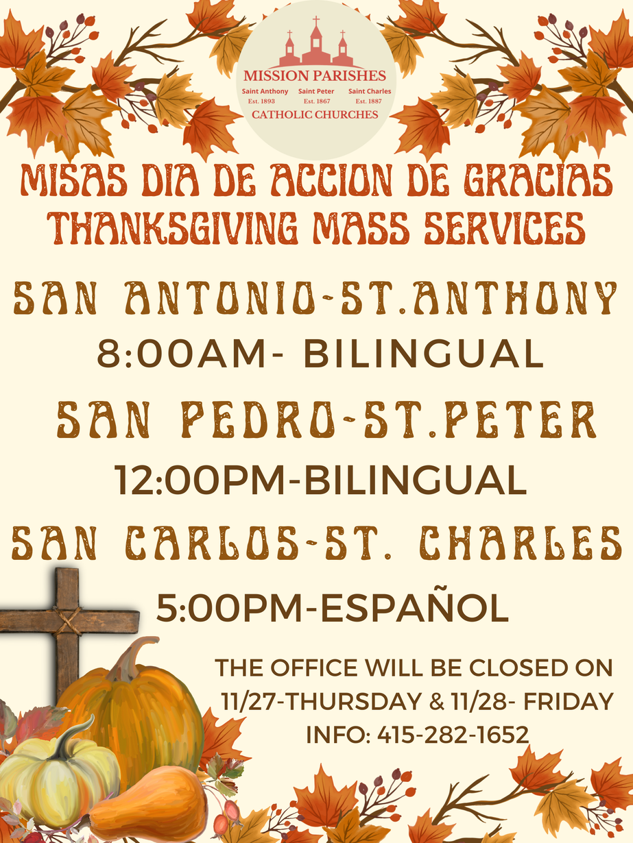 11/27- Thanksgiving Services | Misas del Dia de Accion de Gracias
